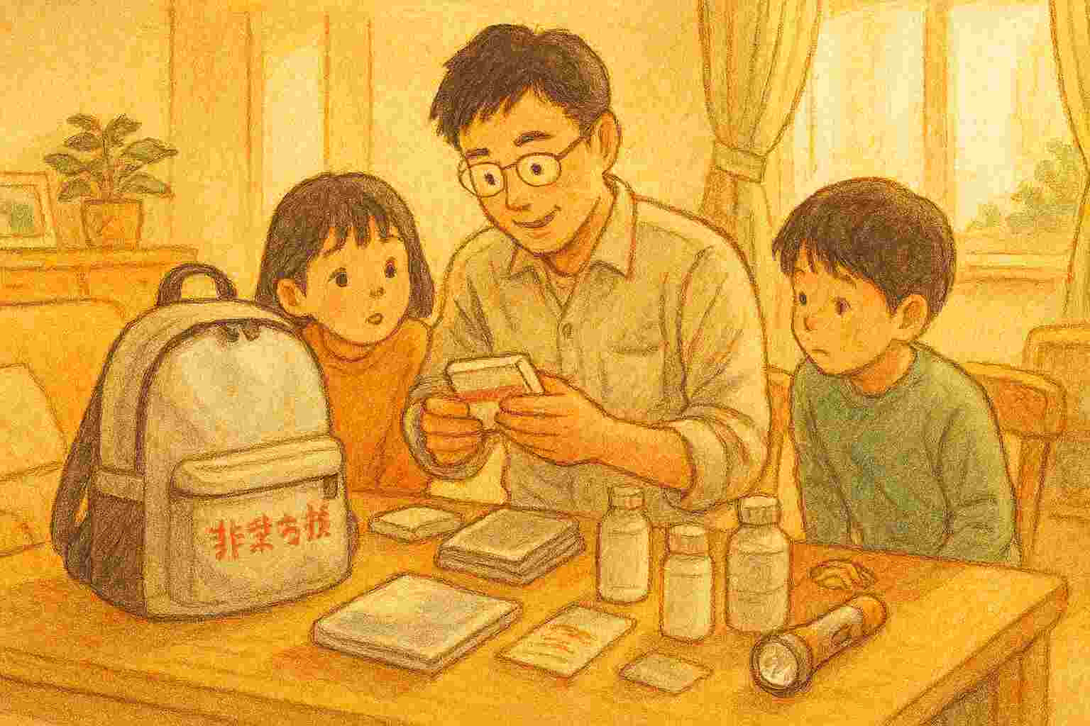 わたしの家では、子供2人(小学生と保育園児)がいるため、大人用リュックとは別に「子供用の軽いリュック」を用意しました。中身は500mlの水、おやつ、小さなライトだけ。これなら3kgに収まり、子供自身が背負えます。